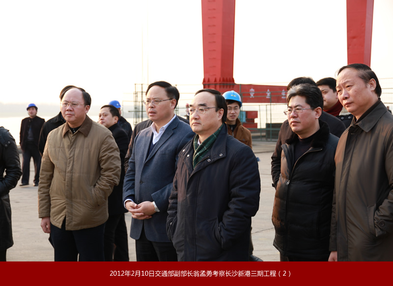 2012年2月10日,交通運輸部黨組副書記、副部長翁孟勇來長沙新港考察時強調(diào):長沙新港變化一次比一次大,當(dāng)前要借助湖南加大水運發(fā)展力度的有利契機,加快樞紐、港口和湘江2000噸級航道提升建設(shè),更好地服務(wù)經(jīng)濟社會和航運的持續(xù)發(fā)展。